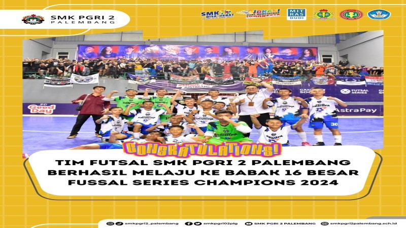 Congrats ya buat Tim Futsal SMK PGRI 2 Palembang telah berhasil lolos ke babak 16 Besar di ajang Futsal Series Champion.