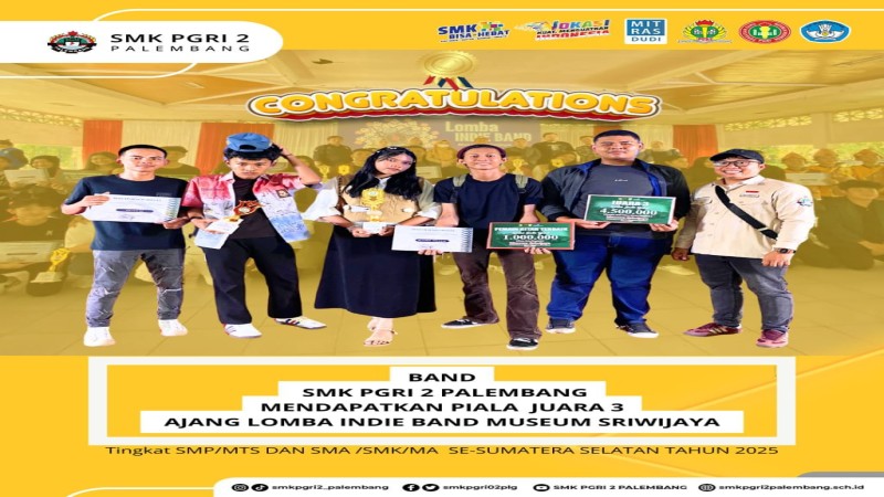 SMK PGRI 2 PALEMBANG - Band SMK PGRI 2 PALEMBANG Berhasil Membawa Pulang Piala Juara 3 Ajang Lomba Indie Band Museum Sriwijaya Tingkat SMP/MTS DAN SMA/SMK/MA S